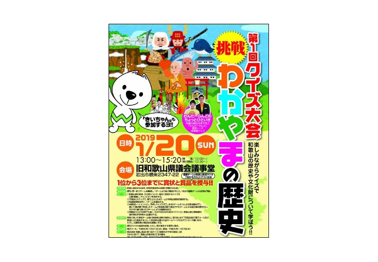 NEWS 和歌山県教委は来月20日、県の歴史について出題するクイズ大会を中学生向けに初めて開く。原則として学校ごとに3人の生徒で1チームを編成し、2択式で予選を勝ち抜いた4チームが決勝トーナメントに進む。決勝…