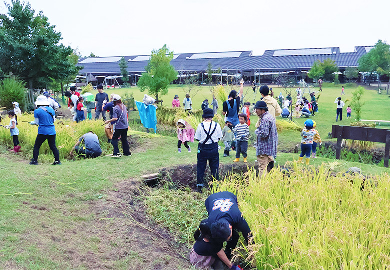 「鉄腕クラブ」の活動として行った稲刈りの様子 国際校庭園庭連合日本支部 研究実践セミナー(2)から 本年度「子どもの主体的な遊びを育む園庭環境づくりとルースパーツ(素材)の導入・実践・可能性を考える…