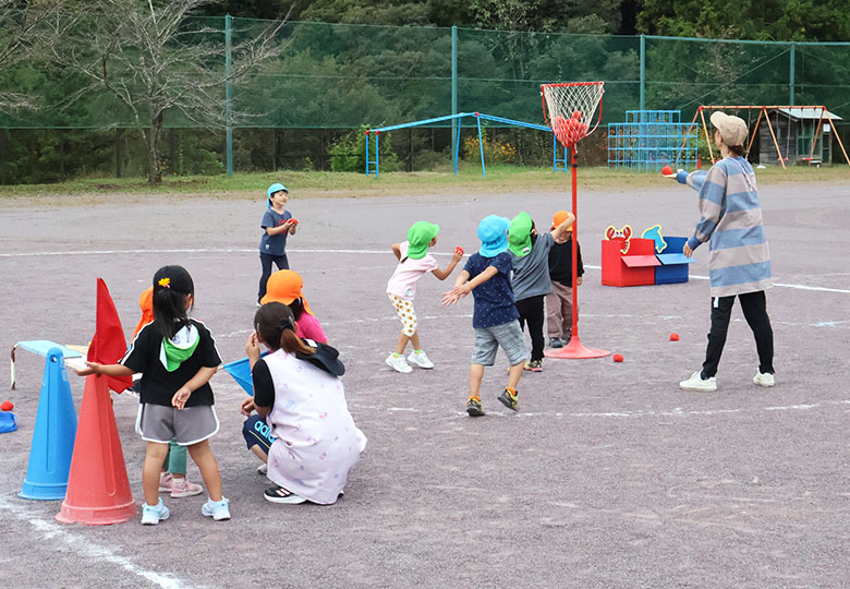 6面記事 異年齢の子どもたちが一緒に運動会ごっこを楽しむ 群馬・東吾妻町立いわしまこども園 異年齢児の活動を多くしてクラスを超えた関係性をつくるなど、少人数の特性を生かした保育を行っている群馬県東吾妻町立いわ…