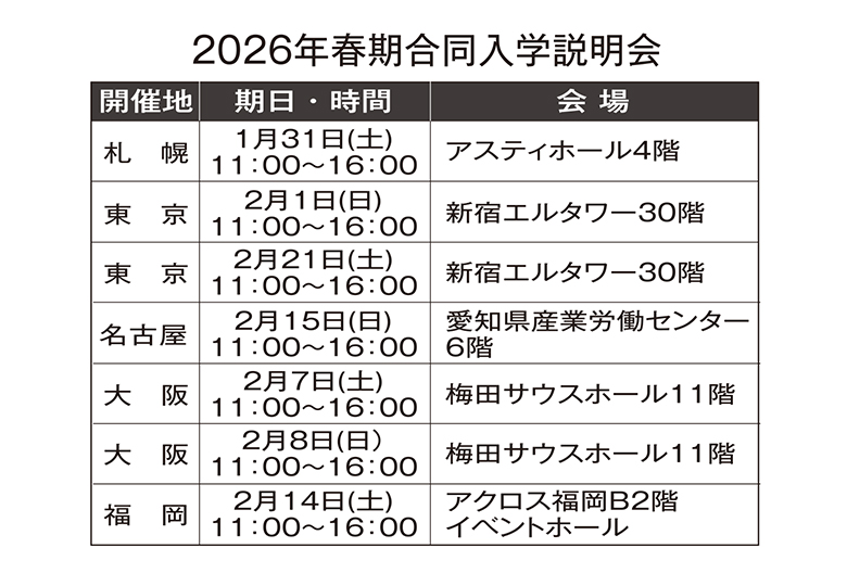 12面記事 「令和8年春期合同入学説明会」を開催 1月24・25日には、オンライン合同入学説明会も