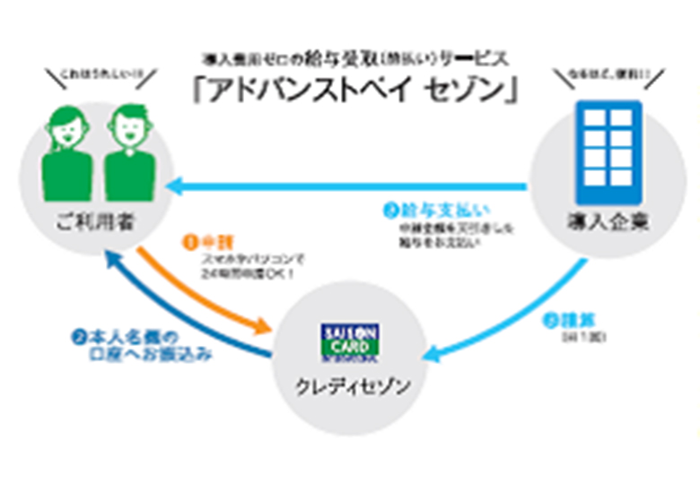 Advanced pay SAISON サービスの流れ 給与受取(前払い)サービス 教育界に押し寄せる人材不足の波。民間教育機関では、福利厚生の充実も課題を乗り越えるための重要な採用戦略となっている…
