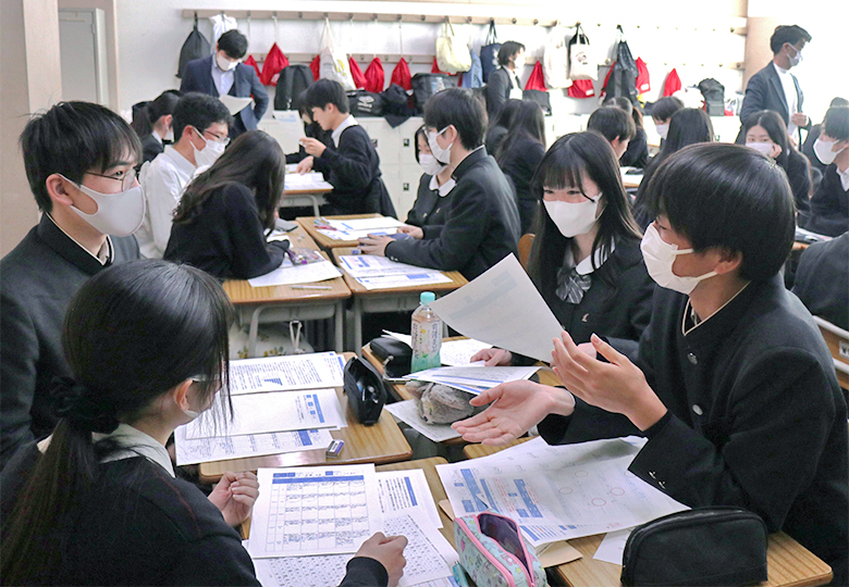 「探究力成長アセスメント」で互いのリポート内容についてフィードバックし合う生徒ら 神奈川県立相模原中等教育学校 神奈川県立相模原中等教育学校(岡野正之校長、生徒960人)で昨年度末、総合的な探究の時…