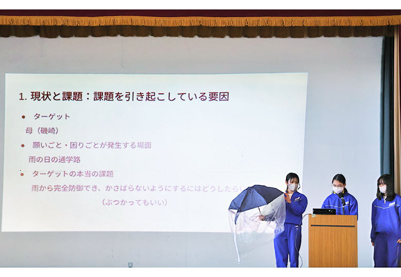 雨の日の通学路の課題を解決するため、「てるてる傘」を開発した生徒たち。発表会で使う様子も披露した 神奈川県小田原市教委は、地域を拠点に教科横断的な思考で探究的・創造的な活動を展開する「小田原版STE…