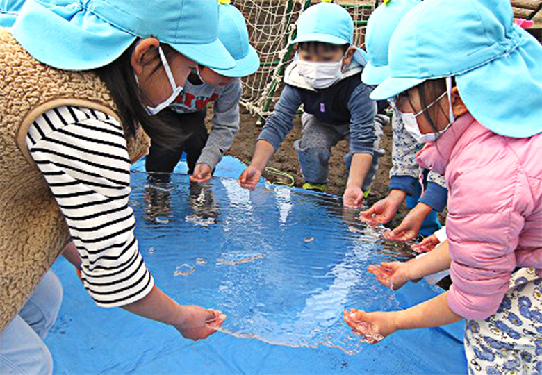 7面記事 静岡・東伊豆町立熱川幼稚園 「たくましい熱川っ子」を教育方針に、子どもたち一人一人が頭・心・体を十分に動かしながら遊ぶ中で、心身ともにたくましさが育つことを目指している静岡県東伊豆町立熱川幼稚園(太…