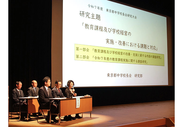 学校経営や教育課程の現状について報告した 東京都中学校長会(会長=佐藤敏数・東京都武蔵野市立第二中学校校長)は昨年12月2日、都内で研究大会を開催した。大会では同会研究部(部長=荒木忍・同小平市立花…